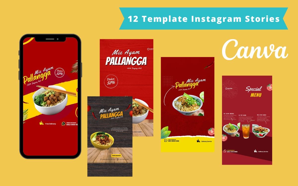 Template Instagram Stories untuk kebutuhan konten sosial media Anda agar terlihat lebih tertata rapi dan cantik. terdapat 12  template yang bisa Anda edit sesuai kebutuhan. Template ini bisa digunakan sebagai media promosi di Instagram yang menjual mie ayam.